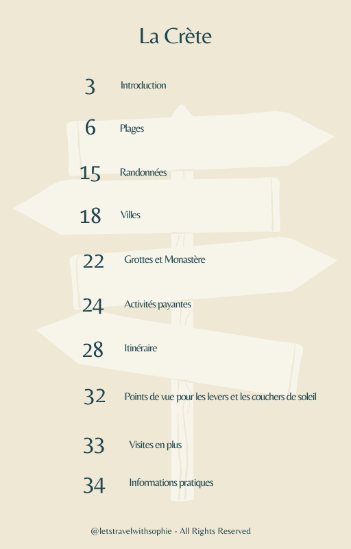 J’ai conçu La Crète Ebook & Carte pour de te faire gagner du temps lors de la préparation de ton voyage et aussi pour te faciliter la vie sur place. Tu retrouveras toutes les informations suivantes: