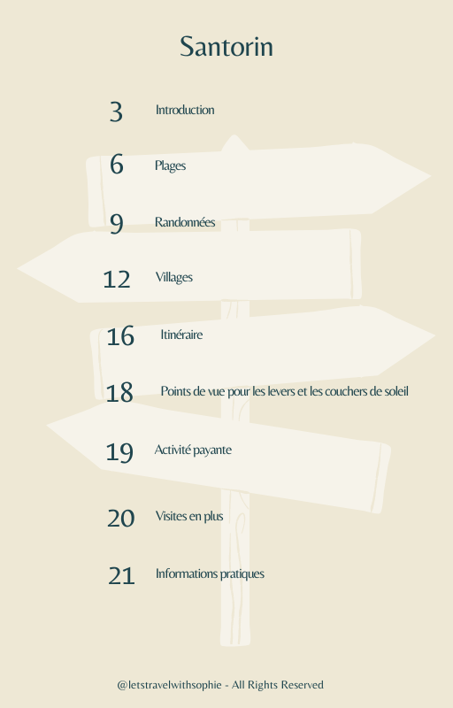 J’ai conçu le Santorin Ebook & Carte pour de te faire gagner du temps lors de la préparation de ton voyage et aussi pour te faciliter la vie sur place. Tu retrouveras toutes les informations suivantes: